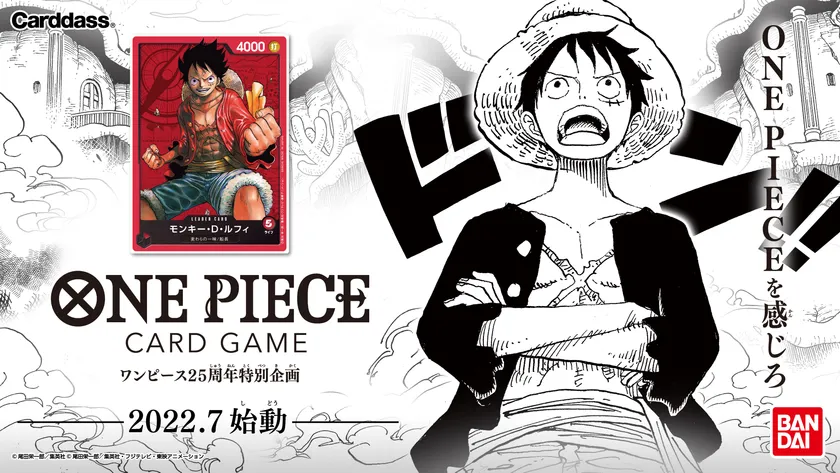 株式会社バンダイ カード事業部は、週刊少年ジャンプで大人気連載中の漫画『ONE PIECE』の連載25周年を記念して、作品の世界観を体感できる本格トレーディングカードゲーム「ONE PIECEカードゲーム」を発売します。