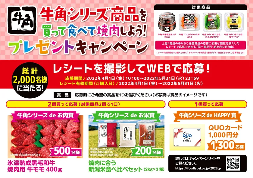 牛角シリーズ商品を買ってWEBで応募! 氷温熟成黒毛和牛や新潟米セット、QUOカードが当たる 「牛角シリーズ商品を買って食べて焼肉しよう! プレゼントキャンペーン」を4月1日から全国で実施