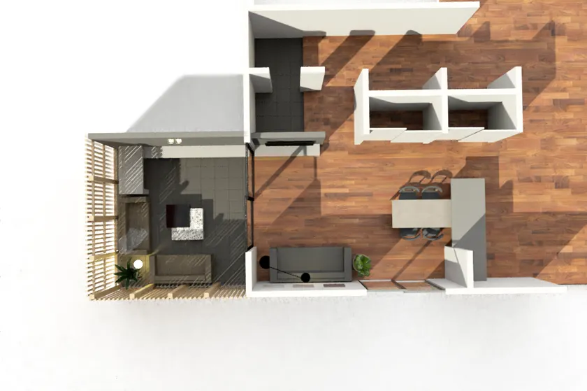 PLAN ONE LAYERのLDKを上から見た図