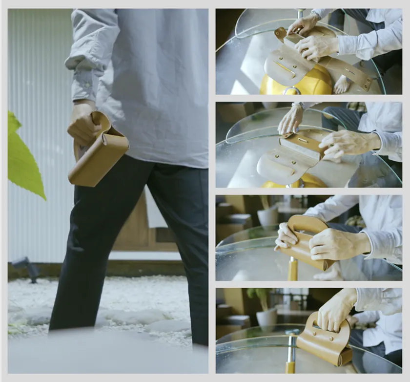 凛を気軽に持ち運びできるように、一枚ものの牛革を使った専用BAGを開発しました。
