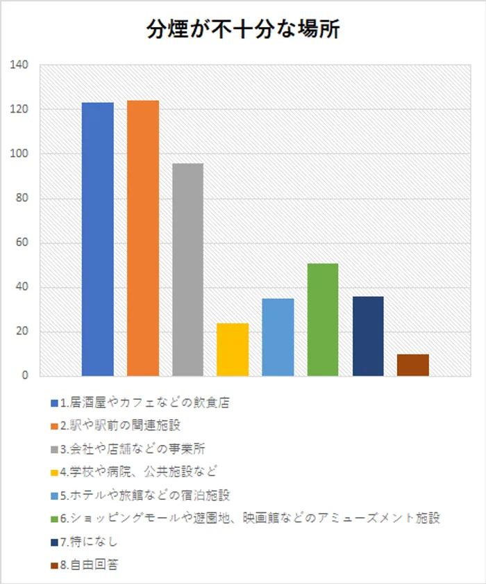 次に、「分煙が不十分だと感じる場所」と「その理由」を質問したところ、以下のような回答が得られました。