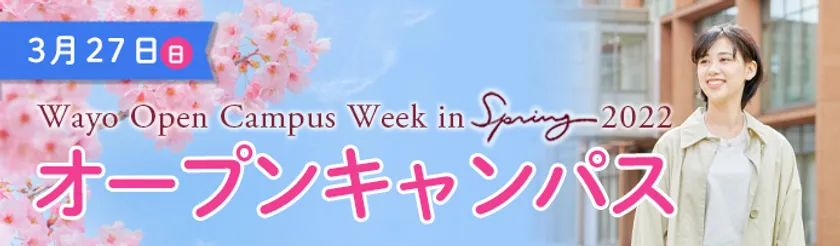 和洋女子大学(千葉県市川市、学長:岸田 宏司)は、3月27日(日)、国府台キャンパスで「新高校3年・2年生向けオープンキャンパス」を開催いたします。新型コロナウイルス感染症への対策を講じたうえで、来場登録制で、参加人数を制限して実施。来場特典として、最新版の大学案内「Wayo Girl」や2023年度入試日程や受験科目などの概要が一目でわかる「入試ガイド」をいち早く配布いたします。