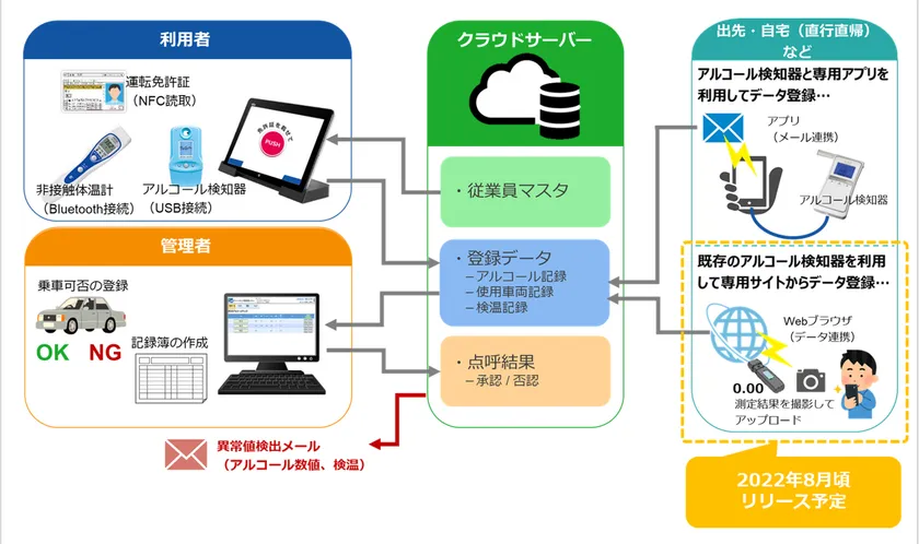 令和4年道路交通法改正対応 クラウド型アルコール検査記録システム 「アルコールチェック:ご安全に!」提供開始 安全運転管理者の管理業務をサポート