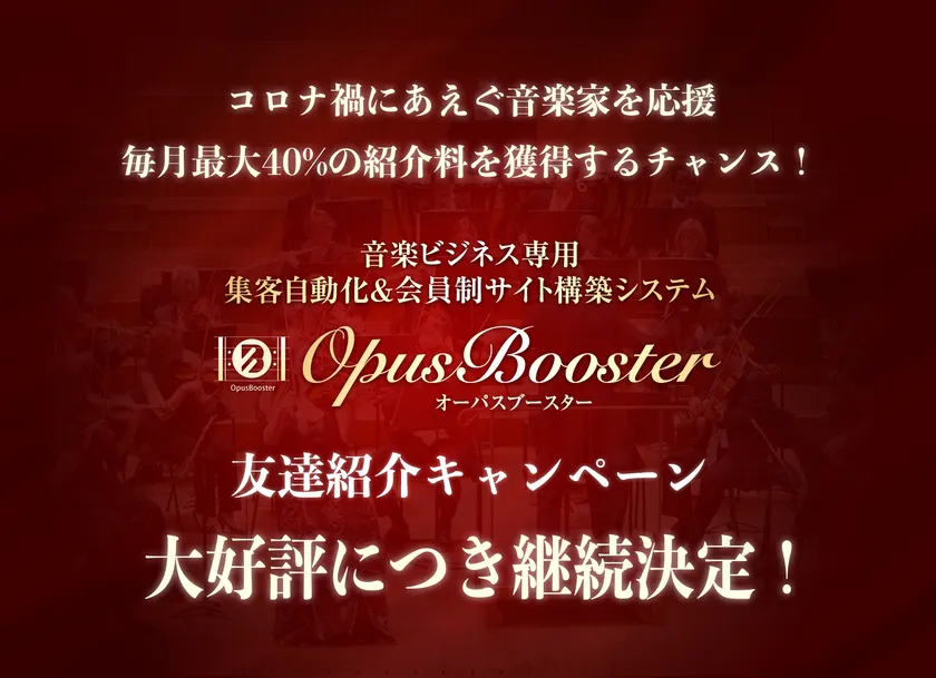 音楽家を応援するために毎月最大40%の紹介料が得られる 「OpusBooster(オーパスブースター)友達紹介キャンペーン」 好評につき継続が決定!