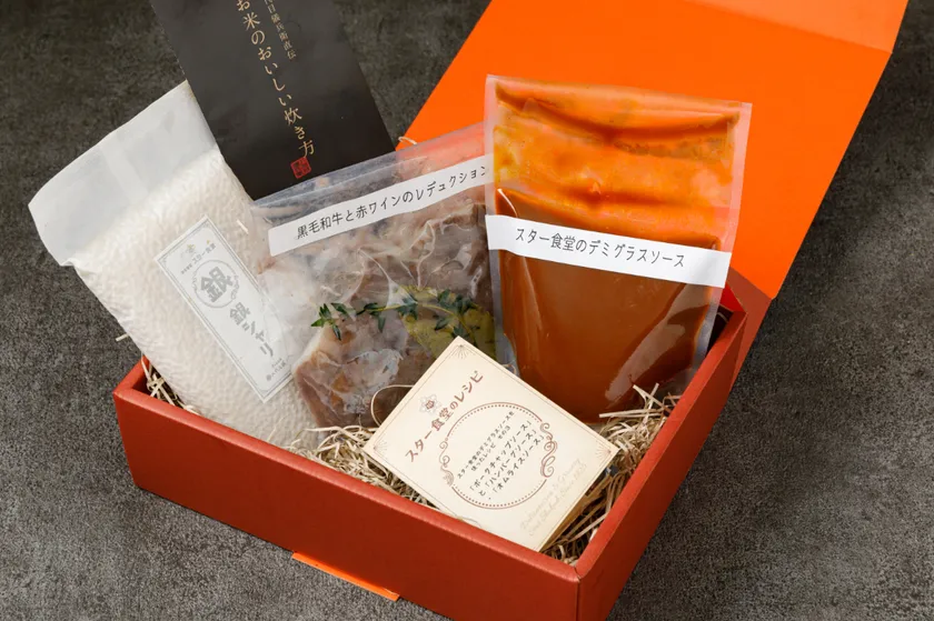 今回は「スター食堂のデミグラスソース」と「黒毛和牛と赤ワインのレデュクション」に加えて、京都の老舗米問屋「八代目儀兵衛」さんとのコラボ企画である洋食専用米「銀シャリ」を付けたミールキットとして提供します。濃厚なハイシソースやお肉の脂と相性が良いのは、しっかりとした甘みと歯ごたえを持ち、粘りは少なくソースとほどけるような食感が最適です。これらのセットに、お米の美味しい炊き方とスター食堂のレシピ集を付けたセットを、Makuakeのセットとして先行販売します。ハヤシライスに合うお米にまでこだわったハヤシライスミールキットセットを、ご自宅でのご利用はもちろん、ご贈答にもご利用ください。