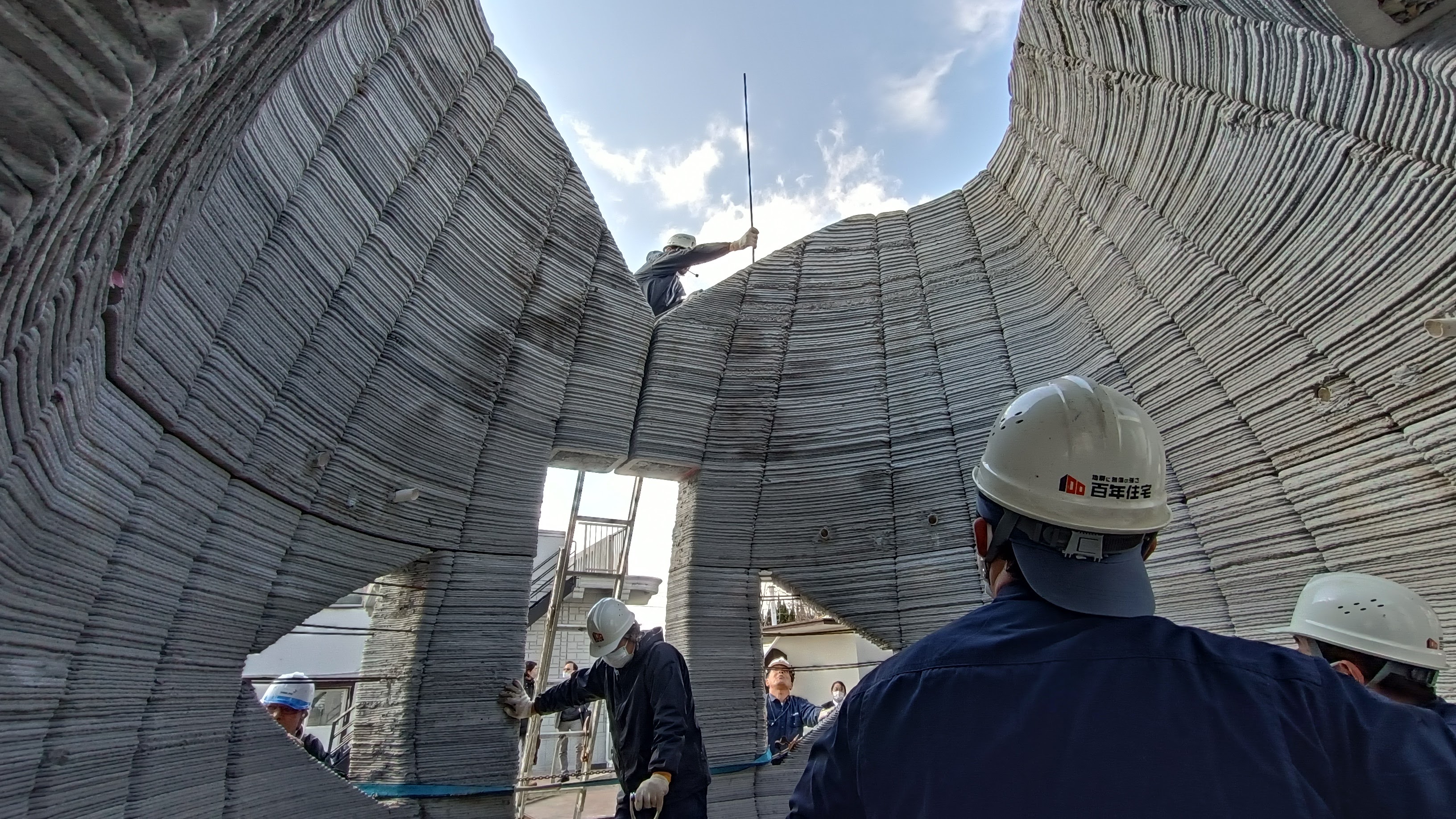 施工風景 世界においても、球体の家の出力には高度な技術が必要になる