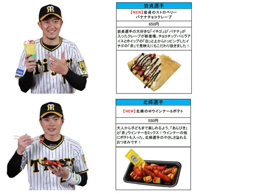 また、より多くのお客様に監督・選手コラボグルメを楽しんでいただくため、4月5日(火)から、外野ライト2階エリアに監督・選手コラボメニュー販売エリアをリニューアルオープンいたします。