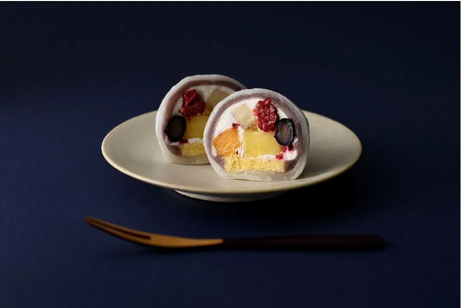 北海道産小豆を使用した関西の人気商品。フルーツとこしあんと生クリームの大福。