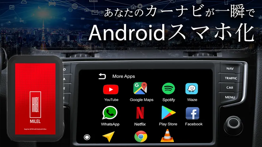 挿すだけでカーナビがAndroidスマホに! 車でアプリが自由に使える!「MILEL」 2月25日にクラウドファンディングを開始