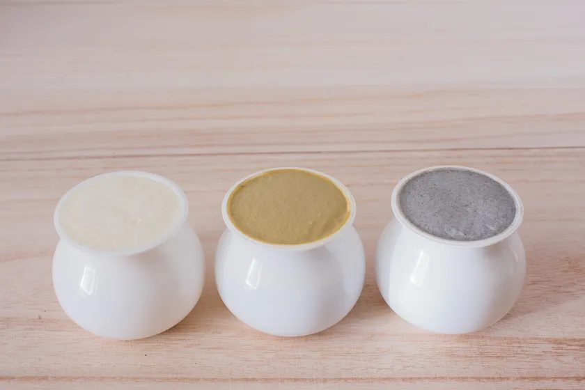 そのほか、カップに入ったわらびもちの上に生クリームをのせ、好みできな粉をかける「クリームわらびもち」(450円)は「プレーン」「ほうじ茶」「黒胡麻」の3種類をご用意しております。