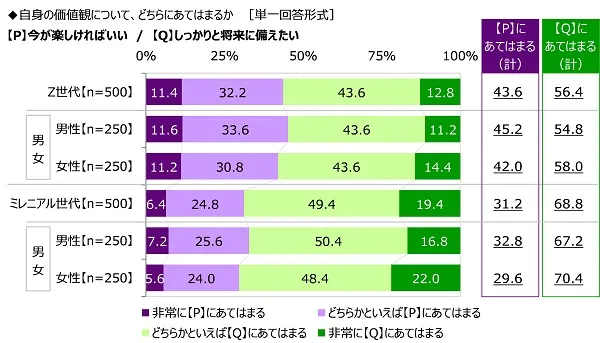 「”今が楽しければいい“より、”しっかりと将来に備えたい”」Z世代56%、ミレニアル世代69%
