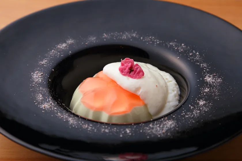 桜のパンナコッタとミルクのエスプーマ