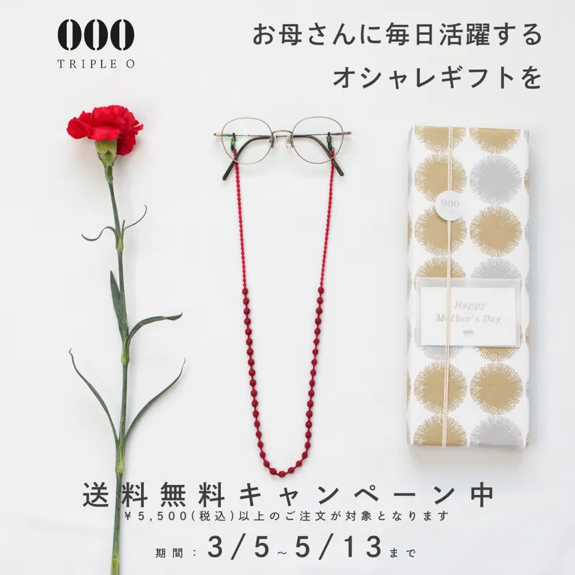 トリプル・オゥのグラスコードは、6gの軽さとシンプルなデザインが、男女共に支持されております。昨年のECサイト“キナリノモール”では、母の日ギフトランキング2位となった人気商品です。