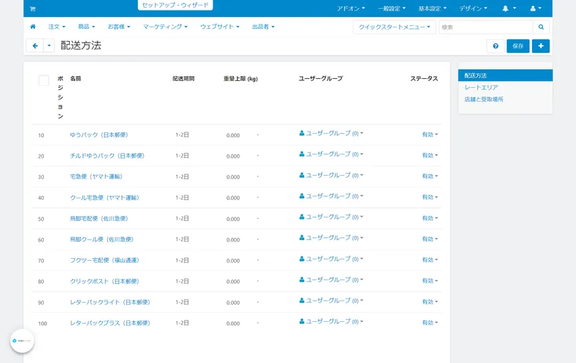 これにより、商品毎に選択できる発送方法を設定することができます。