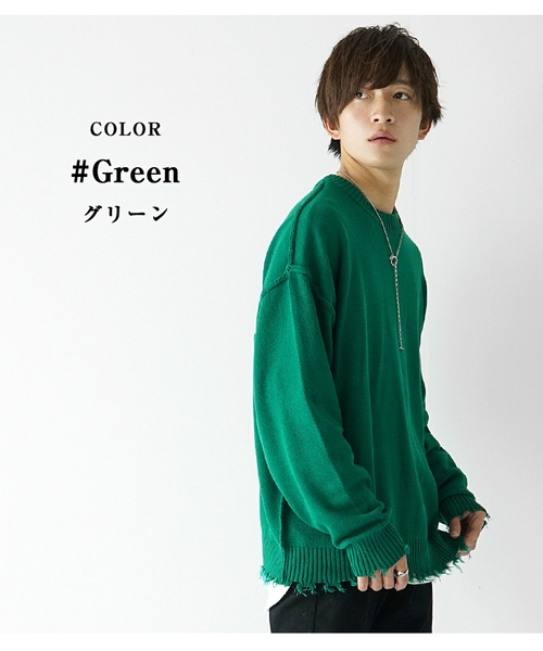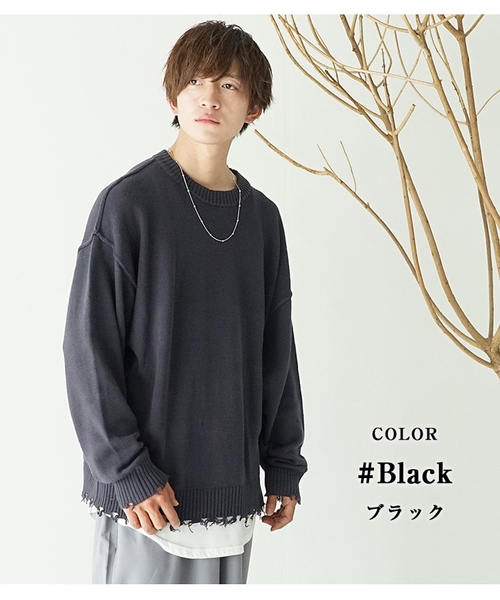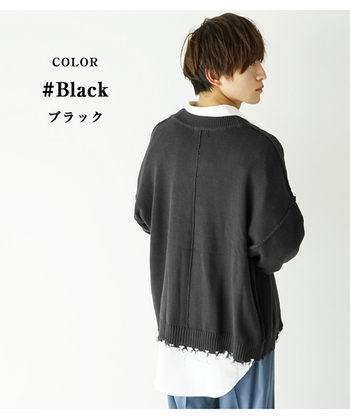 ゆったりとしたオーバーサイズにダメージ加工を施したデザインで、