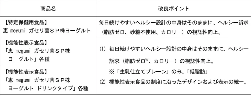 また、「恵 megumi ガセリ菌SP株ヨーグルト」シリーズ 各種(各100g)のパッケージデザインをリニューアルいたします。