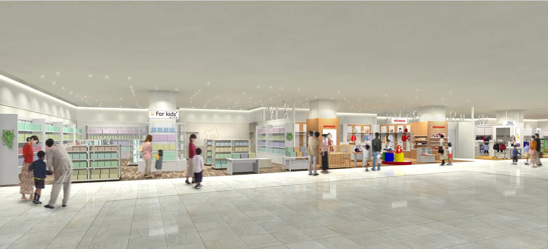 ファミリーでのお買い物の利便性を高めることを目指し、ベビー・キッズ売り場を1階に移設リニューアルオープンいたします。また買いまわりをさらに楽しんでいただけるよう隣接する自主編集売り場の品揃えをリニューアルし、新しい商品やさまざまなイベントを提案いたします。