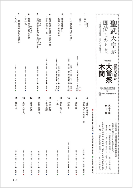 【奈良文化財研究所】聖武天皇が即位したとき。―聖武天皇即位1300年記念― × 【奈良国立博物館】特別陳列「聖武天皇の大嘗祭木簡」展示木簡釈文集を公開しました