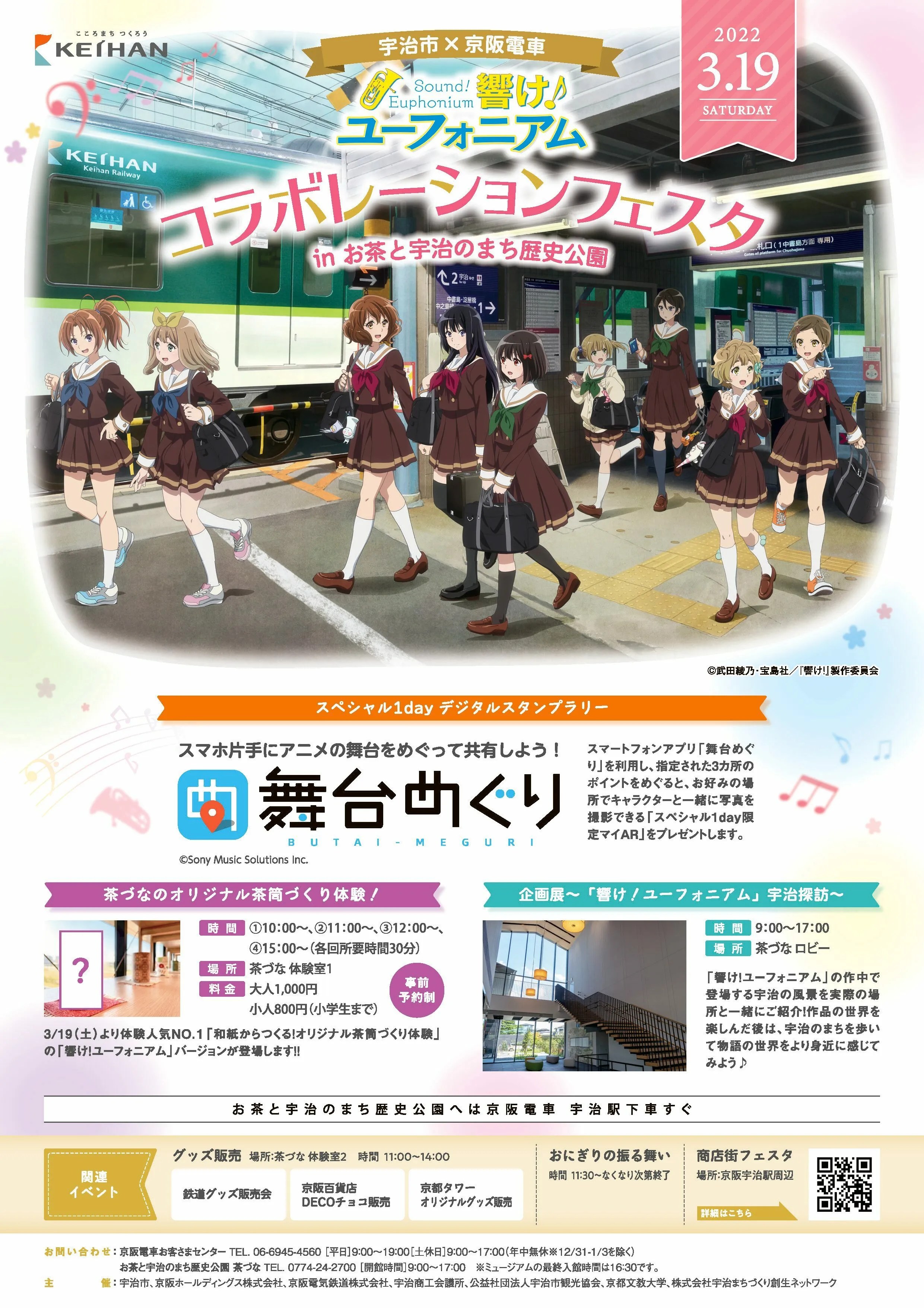 京阪ホールディングス株式会社(本社:大阪市中央区、社長:石丸昌弘)と京阪電気鉄道株式会社(本社:大阪市中央区、社長:平川良浩)は、2021年9月1日~11月30日まで実施したアニメ「響け!ユーフォニアム」とのコラボレーション企画「京阪電車×響け!ユーフォニアム2021」の一環として、3月19日(土)に「宇治市×京阪電車 響け!ユーフォニアム コラボレーションフェスタ inお茶と宇治のまち歴史公園」を開催します。