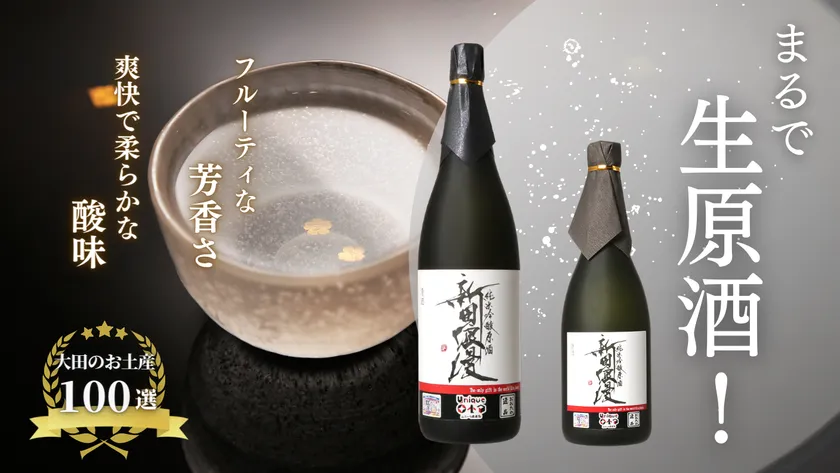 今回出品する瓶詰め原酒「新田浪漫」は、火入れをした状態ながら、生原酒と差異がないくらいにしっかりとした美味しさを感じられます。原酒なので骨太な味わいですが、ものすごく丁寧に、きれいに作られているため、後味はすっきり。日本酒が苦手な方も飲めてしまうほど、飲みやすさ抜群の日本酒です。