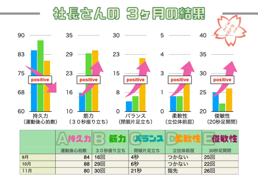 現在従業員数14名と小規模ながら、社長をはじめ社員全員が理学療法士というのも特徴の一つ、パーソナルトレーニングスタジオ、自費による保険外訪問リハビリテーション、企業での健康経営サポート、刑務所での受刑者に対する運動指導、老人ホームでの革新的なリハビリ室のプロデュースなど、様々な取り組みを行なっています。