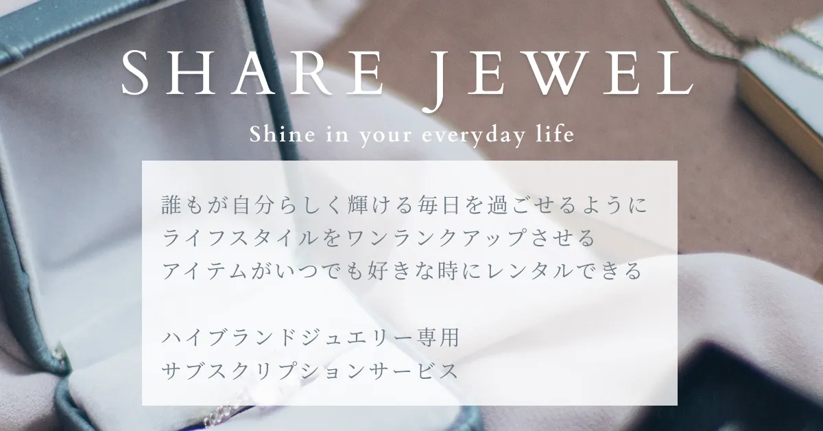 シェアジュエルは「誰もが自分らしく宝石のように輝ける毎日を過ごせる、ライフスタイルをサポートする」ことをビジョンとし、「ジュエリーのある生活がライフスタイルを豊かにする」との思いで、皆さまが手に取りやすいように高級ブランドジュエリーやアクセサリーをリーズナブルな価格でシェアリングをするサービスを提供しています。