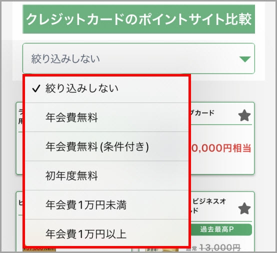 「ポイント比較ガイド」としてリニューアルし、さらに絞込み条件機能を追加しました。