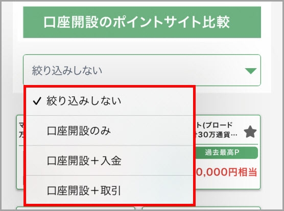 ポイントサイト利用者の中には「口座開設のみ」でポイントを獲得したい人も多いと思いますので、3つの条件を作りました。