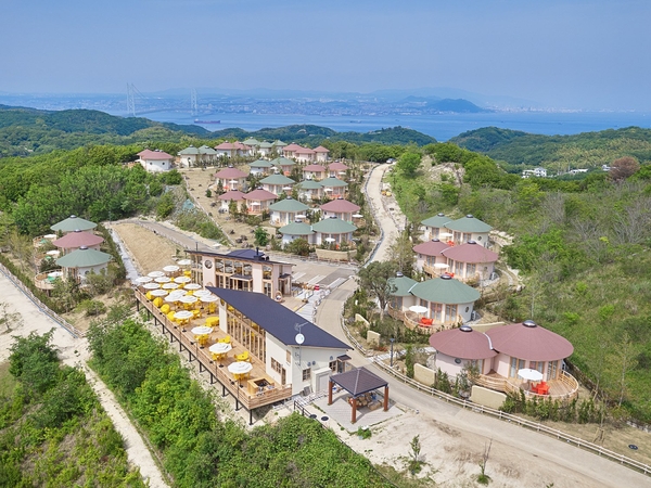 兵庫県立淡路島公園内の小高い丘に佇む23棟のヴィラは、四季折々の自然を五感で感じたり、夜には対岸に広がる光輝く神戸の街並と淡路島の満天の星を体感いただける随一のロケーションを楽しむことができる。旅の醍醐味である食事は、兵庫県 ひょうご「食」担当参与である山下春幸シェフ監修のもと、こだわりの淡路島産の食材を使ったここでしか味わえない創作料理を提供。また「クレヨンしんちゃん」や「ハローキティ」、「NARUTO」など大人気のキャラクターをテーマとした至極のコラボルームもオープンしている。