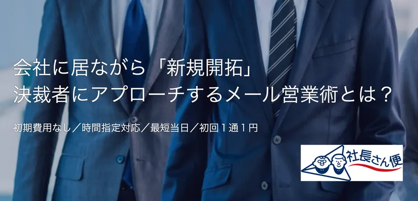 1円メールを提供する株式会社 法人営業マーケティング(所在地:東京都台東区、代表取締役:井上 隆雄)は、経営者・決済者にアプローチできるメール営業サービス「社長さん便」の1万通増量キャンペーンを3月15日(火)から4月28日(木)まで実施いたします。