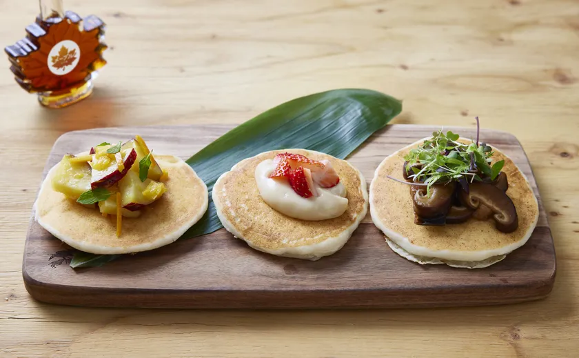 江戸前ハーブを添えた新感覚のパンケーキです。