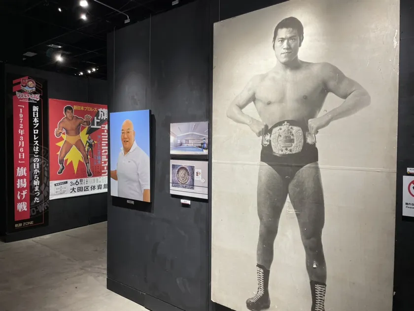1972年3月6日“旗揚げ戦”新日本プロレスはこの日から始まりました。貴重な旗揚げ戦の資料、旗揚げシリーズのポスター、50年前に開催された、大田区総合体育館での旗揚げ戦の関連資料がズラリと並び、歴史を感じさせるコーナーです。