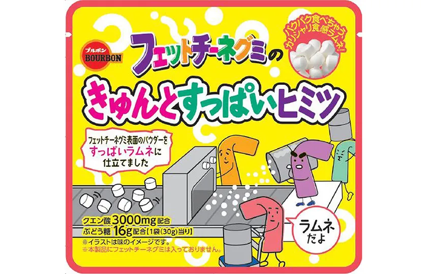 ブルボン、甘酸っぱさが詰まったカリシャリ食感のラムネ 「フェットチーネグミのきゅんとすっぱいヒミツ」を 3月29日(火)に新発売!