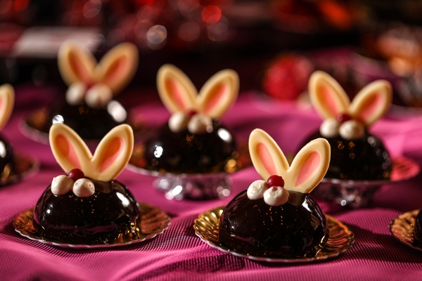 不思議の国のタルトレット、うさぎのチョコレートムース、真っ赤なハートのベリームース、トランプ兵のクッキーなど、見た目も可愛いスイーツに加え、パスタやサラダ、スープといった軽食もご用意しております。