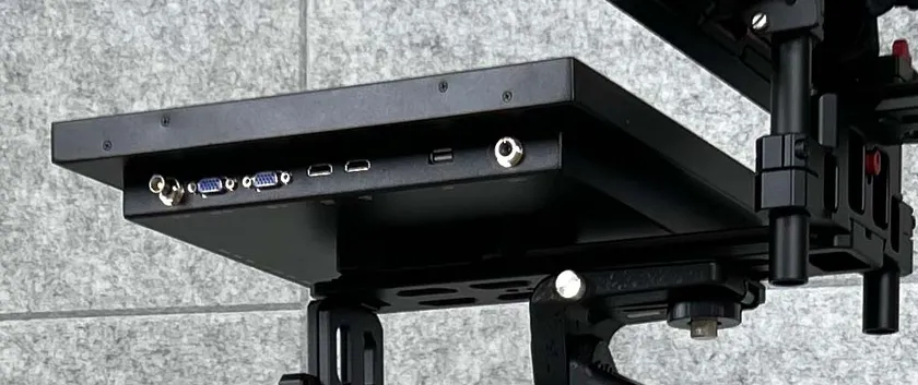 モニターの入力信号はVGAとHDMIでそれぞれにOutの端子がついています。プロンプターを複数台使うようなシーンで画面の同期をさせる際や、別のモニターへ確認用に出力する際に、分配器無しで運用ができます。設営の手間の削減につながります。