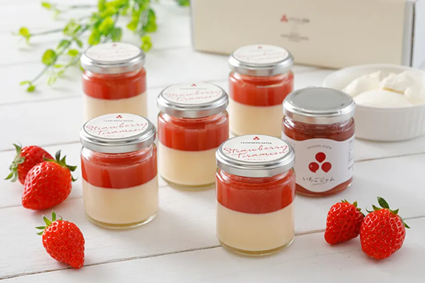 完熟いちごを贅沢に使ったふわとろ食感のティラミスは、京都・左京区の人気パティスリー「パティスリータツヒトサトイ」と、おさぜん農園のコラボレーションで実現した本格スイーツ。