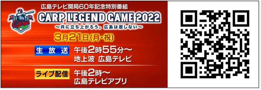 <広島テレビ> カープOB戦「Carp Legend Game」を 広島テレビアプリ経由で2022年3月21日にライブ配信