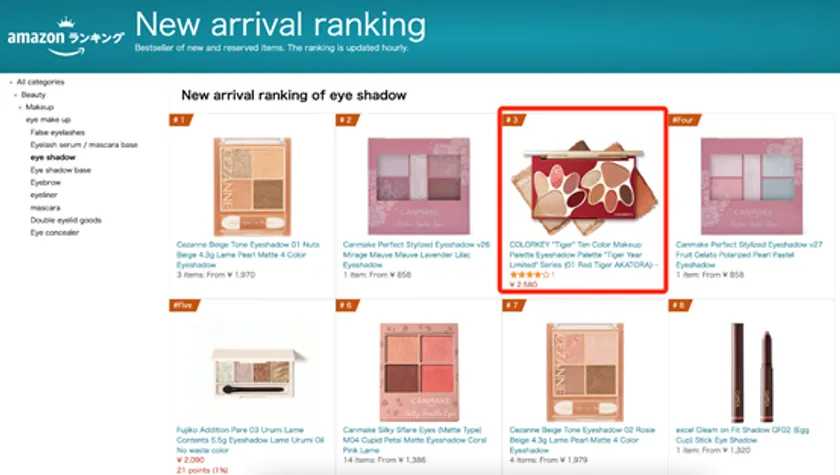 発売初日は日本のアイシャドウパレット部門で3位になりました。