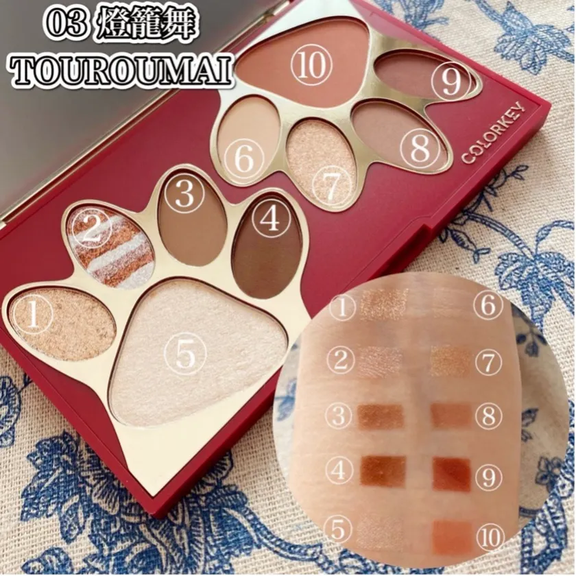 Colorkeyは、可愛い虎を主題に、虎の「肉球」と「激しい線」を虎年限定デザインに取り入れています。細やかなパウダーが、空気のように軽いつけ心地を実現します。アイシャドウにはマットなものやラメ、パールが含まれているものもあり贅沢感が満載です。ハイライトのラメは繊細で、光沢があります。
