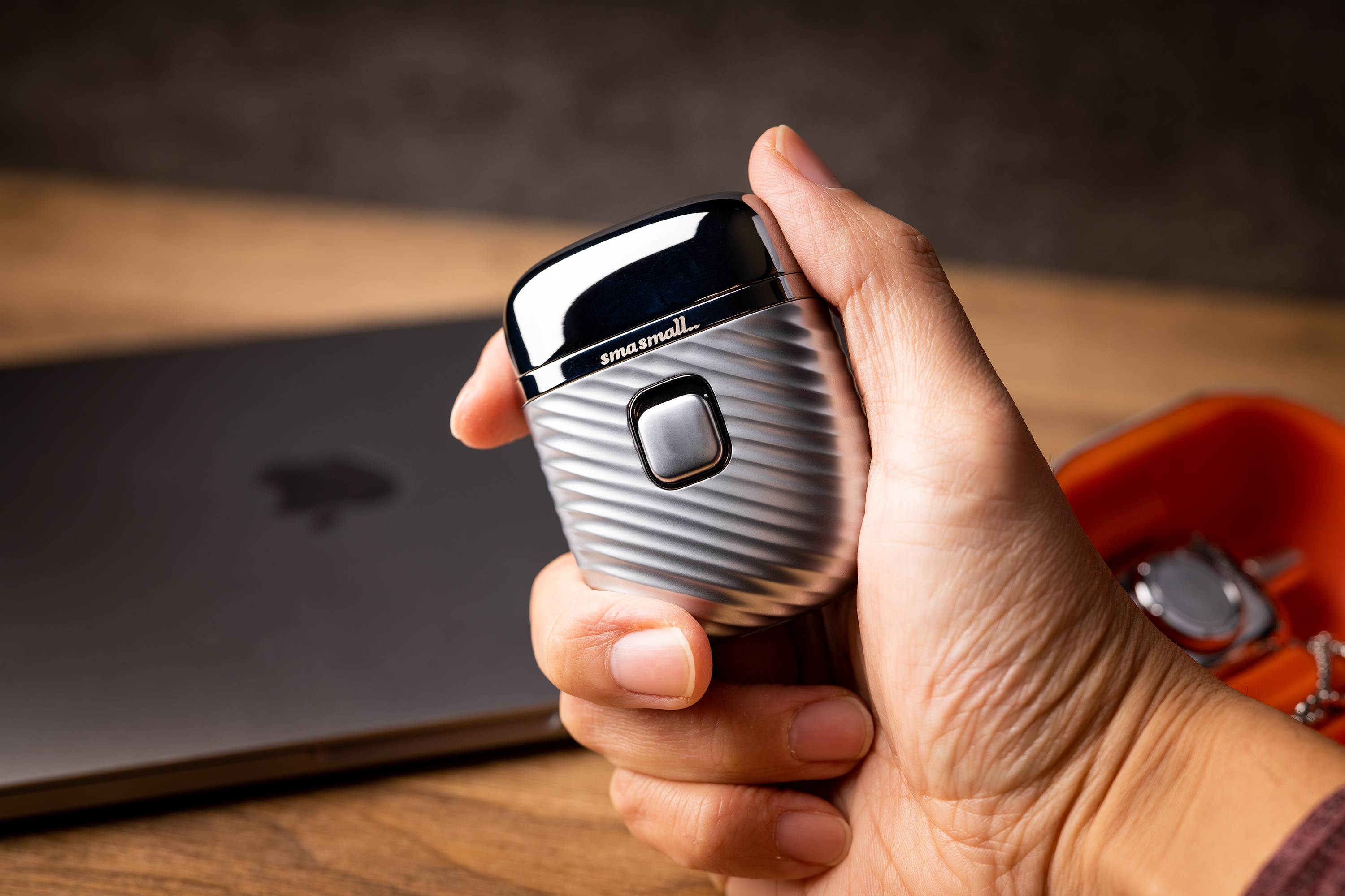 SMASMALLノーズトリマーは電源稼働型ではなく、トランスミッション構造で稼働するように設計されているので充電や電池は不要で、本体中央のボタンを押すだけでOK!