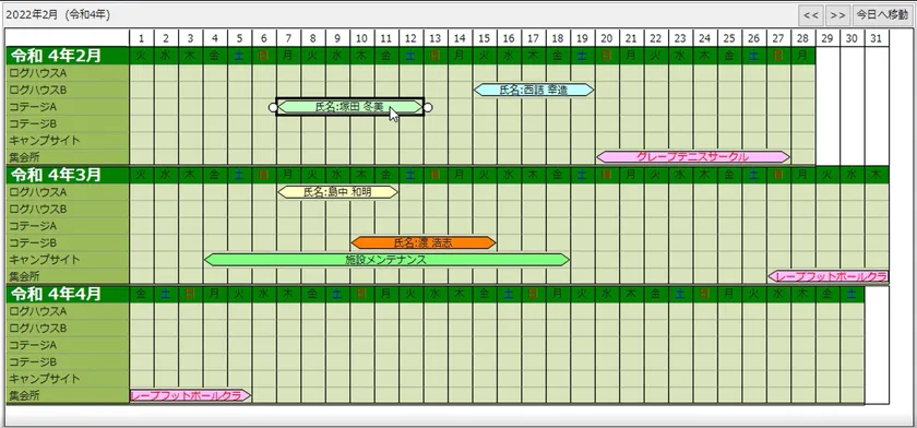 カレンダー形式のグリッド上に表示しているアポイントメント型セルをマウスのドラッグで移動できるようになります。また、マウス操作で増減する際の単位の設定も可能となり、よりガントチャートとしての利用が便利になります。