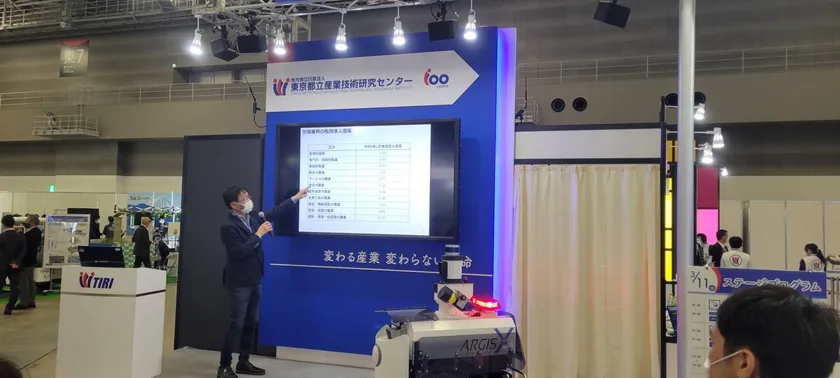 富士防災警備は、「ロボットと警備員の融合」を方針に警備ロボットの開発を続けてまいりました。今回の2022国際ロボット展では、「東京都立産業技術研究センターのブース内、次世代5G対応ロボット部門」に、2021年3月より運用を開始した、クローラー式屋外巡回用警備ロボット「アルジスX」を展示させていただき、ロボットを活用した警備サービスの取組みについて、ご紹介させていただきました。