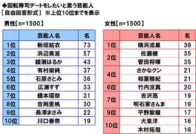 “回転寿司デート”をテーマに、イメージに合う有名人について聞きました。