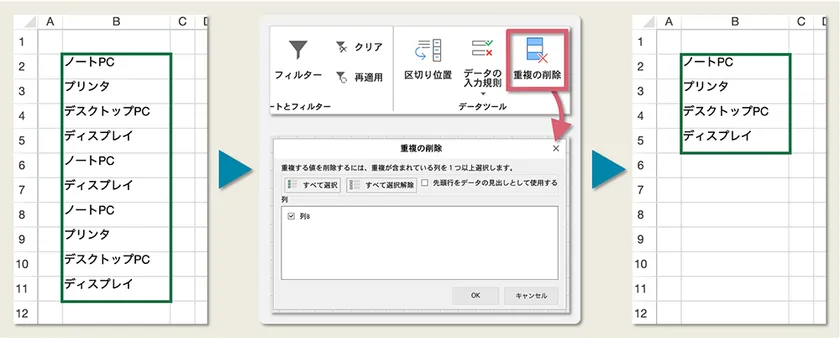選択範囲内に重複したデータが見つかった場合に、自動的に削除できる機能を追加しました。