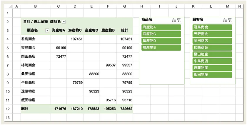 ピボットテーブルの「スライサー」機能をサポートします。この機能を利用することにより、シート上のフィルタパネルを使ったピボットテーブルデータの直感的な絞り込みを行うことができます。