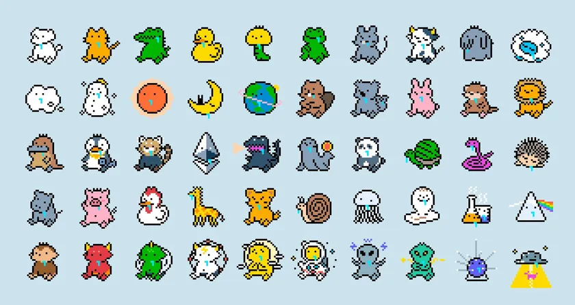 このように、maeは鑑賞体験を提供する絵画的な作品を生み出す一方で、昨年発表したフルオンチェーンのNFTプロジェクト『Drools&Pixels』のように、彼のトレードマークでもある「ヨダレを垂らした犬」をはじめ、ゆるく可愛らしいキャラクターをシリーズで展開し、デジタル作品の新しい楽しみ方を提供しています。また、今年2月には、このプロジェクトで発表される作品#50~#70の売上を全額ウクライナへ寄付すると発表し、それに賛同したファンによって20点の作品がわずか5分で完売。4.6ETH($13,719.41)が暗号通貨としてウクライナに寄付されるなど大きな話題となりました。