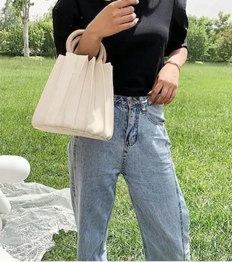 サークル型のウッドハンドル×トレンドのプリーツデザインが個性的で、ころんとした可愛いサイズ感のバッグ。取り外し可能なショルダーストラップ付きの2way仕様で異なるスタイリングを楽しめます。高級感のあるマットな風合いとディテールが甘くなり過ぎず大人っぽい仕上がりに。出し入れに便利な大きく開く開口部や見た目以上にたっぷり入る丸い底面が小ぶりながらも機能的で、カジュアルにもキレイめにも合わせやすいデザインは、コーデのアクセントとしても活躍してくれそうです。