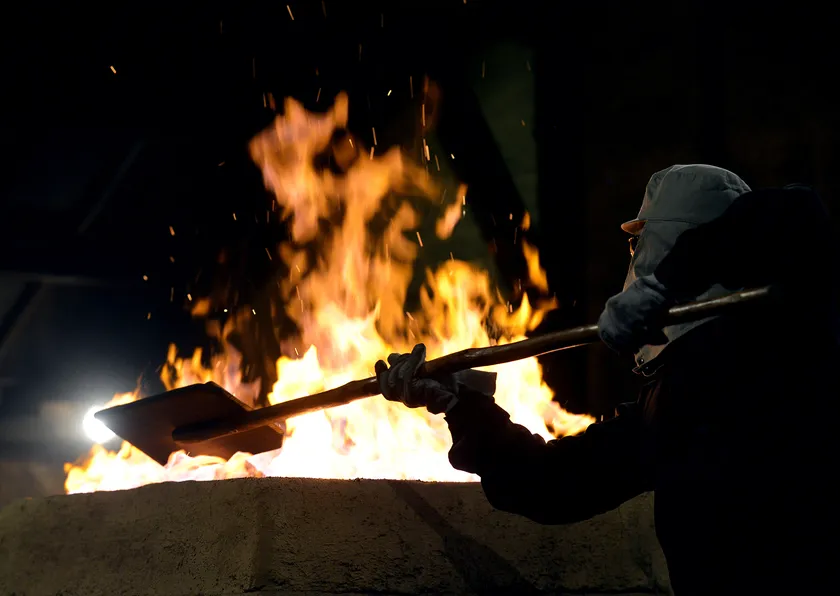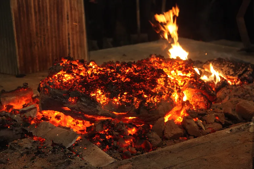 たたら製鉄を用いた、たたら操業の様子