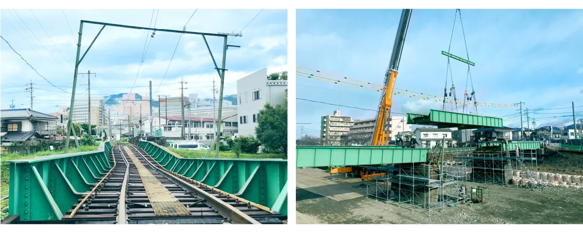 2021年8月の豪雨は、降水量の少ない松本にとって記録的な雨量をもたらし、河川増水の影響を受けて、西松本駅~渚駅間にかかる田川橋りょうが被災しました。現在も田川橋りょうは復旧工事中で、松本駅~渚駅間は、バスによる代行輸送を行っています。