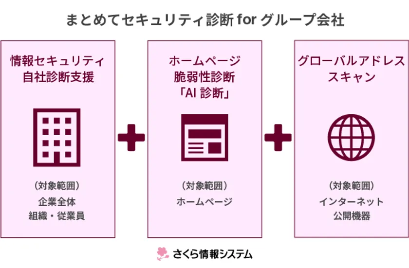 さくら情報システム株式会社(本社:東京都港区、代表取締役社長:重定 宏明、以下:さくら情報システム)は、サイバー攻撃に備えて、グループ会社などのセキュリティ対策状況をまとめて診断する「まとめてセキュリティ診断forグループ会社」のサービス提供を2022年3月30日に開始いたします。